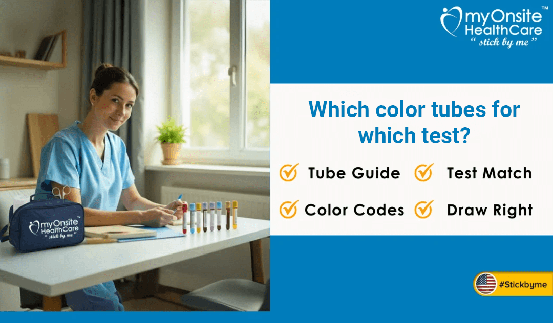 At myOnsite Healthcare, our mobile team sees this every day. We draw for patients at home, in clinics, and for clinical trials. And since we aim for zero rejected samples, we thought we’d share a down-to-earth blood collection tube color guide that makes things simple to remember.